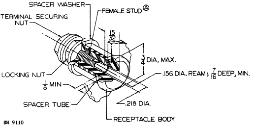 - Design: Receptacle shall be designed to fit the following: Panel hole 1/2-inch diameter. Panel thickness 1/8 inch to 1/4 inch.