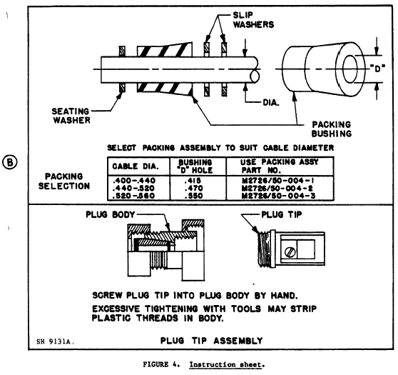 - Packing assemblies: MIL-R-2726/50-004-1, MIL-R-2726/50-004-2 and MIL-R-2726/50-004-3 shall be furnished. User shall select size that most nearly fits the cable as shown on figure 4.